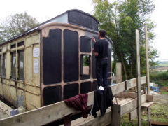 In our next search for coaches we knew what we wanted – Victorian bodies of about thirty feet in length (easy to move and manageable) and definitely no clerestory roof (lots of extra work in the windows, and a challenge to keep watertight). With the help of a friend, Jon Wood, who had knowledge of carriage bodies, we found a lovely coach – a GWR brake third of 1896, and on eBay purchased another good one – a Taff Valley Railway coach of 1889. We bought a derelict LSWR brake body as a services coach and were feeling fairly smug, but then we had a phone call that threw everything into disarray – the offer of a carriage from Queen Victoria’s Diamond Jubilee train, the first ever GWR dining car (which we’d long hankered after – but that’s another story…) and the last GWR slip coach of 1896. What a dilemma – all three were long (two over 57 feet) and all three had clerestory roofs. We said yes of course.