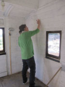 We have moved onto fitting out the interior and landscaping and work is moving apace. As I write on the 15th September, all the partitions are complete, we have curtain rails (the curtains have were ordered a few months ago and are being handmade in the village), a smart wet room and the kitchen is underway. Lizzy is painting a mural for the bathroom windows and we are looking forward to the next few weeks as the finishing touches are completed.