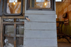Even more sawing, sanding and carving, with the addition of painting and stuffing behind the panels with insulation too, to add to the variety. Millpool has been fully insulated underneath, and the guard’s end is now complete and a matchboard cladding has been added inside, and galvanised steel panels now protect the exterior. There has been an incentive for this work, as with the end exposed the wind and rain was whistling through. Ben has set up his stove and the workers are now toasty and warm.