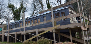 Mevy, the GWR slip coach, was the last carriage onto site, and the first to be completed. Much research was done into how it should be decorated. We decided to push the boat out and get the finest materials that we could, in keeping with its history, but the end result has been more than worth it. We welcomed our first guests in July 2013. Its opulent interior has meant it is very popular.