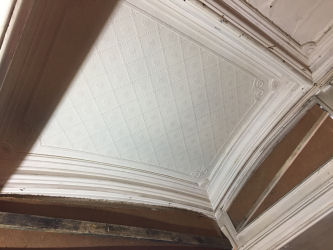 The life expired canvas roof covering was removed and the non-original hardboard false ceiling taken down.